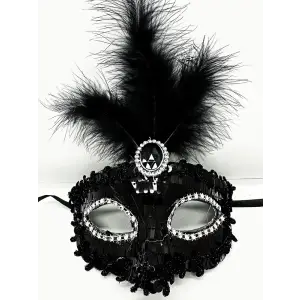 Siyah Renk Payetli Pullu Tüylü Parti Maskesi 17x20 cm
