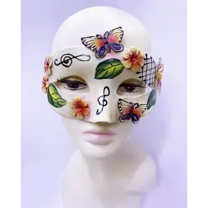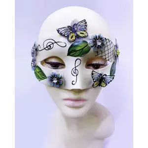 Kelebek ve Çiçek İşlemeli Venedik Maskesi Siyah Renk 10x18 cm