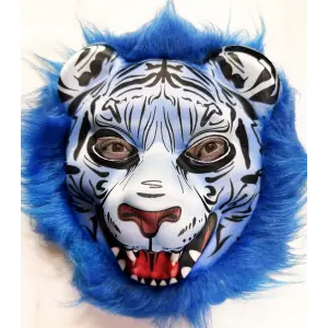 Mavi Saçlı Kaplan Maskesi Kurt Maskesi Mega Peluş 27 No