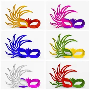 Tüylü Renkli Karton Parti Maskesi – 6 Renk