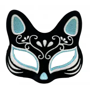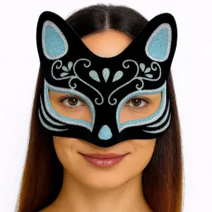Siyah Renk Süet Kaplama Üzeri Gümüş Mavi Simli Kedi Maskesi 17x14 cm