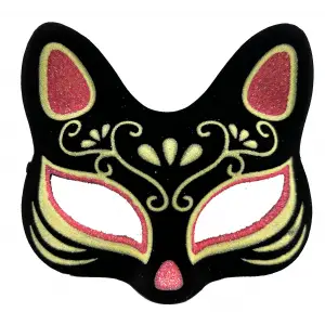 Siyah Renk Süet Kaplama Üzeri Sarı Pembe Simli Kedi Maskesi 17x14 cm
