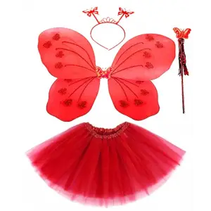 Kırmızı Kelebek Kostümü - Kırmızı Kelebek Kostüm Aksesuar Seti 4 Parça