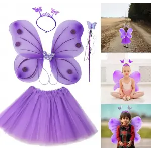 Lila Mor Kelebek Kostümü - Lila Mor Kelebek Kostüm Aksesuar Seti 4 Parça