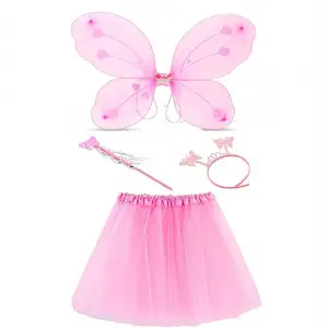 Toz Pembe Kelebek Kostümü - Toz Pembe Kelebek Kostüm Aksesuar Seti 4 Parça