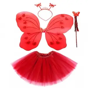 Kırmızı Kelebek Kostümü - Kostüm Aksesuar Seti 4 Parça
