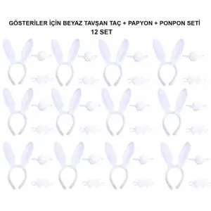 Beyaz Tavşan Kostüm Seti – Taç, Papyon, Kuyruk (12’li Paket)