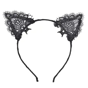 Siyah Kedi Dantel Taç + Eldiven Seti – Parti, Dans ve Kostüm Kombini