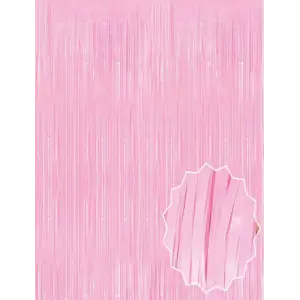 Kendinden Yapışkanlı Pembe Metalize Püsküllü Masa Eteği