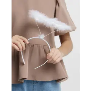 Beyaz Renkli Tüylü Bebek Melek Kanadı ve Tacı 30x45 cm