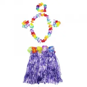 Havaii Kolye Etek Taç ve Bileklik Seti Mor