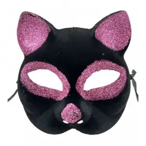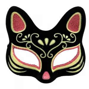 Siyah Süet Kırmızı Sarı Simli Kedi Maskesi