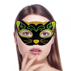 Siyah Kadife Sarı Yeşil Simli Kedi Maskesi