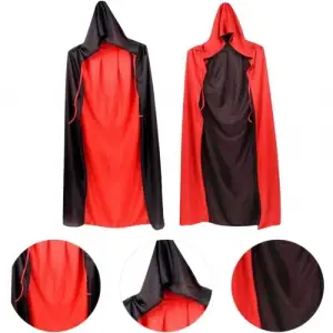 Siyah Kırmızı Çift Taraflı Kapişonlu Pelerin