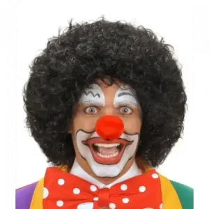 Siyah Kıvırcık Afro Peruk ve Kırmızı Sünger Burun Seti