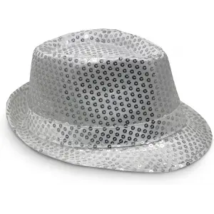 Disko Star Gümüş Payetli Fötr Şapka Yetişkin Boy