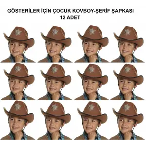 Kovboy Şerif Şapkası Kahve 12 Adet - Kostüm, Parti ve Gösteri Şapkası