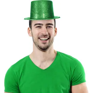 Yeşil Renk Parıltılı Simli Fötr Silindir Parti Şapkası
