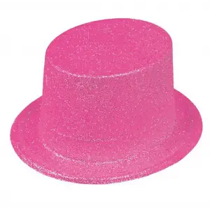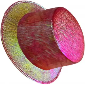 Fuşya Renk Işıltılı Hologram Kumaş Kaplama Fötr Silindir Şapka Yetişkin Boy