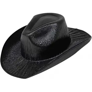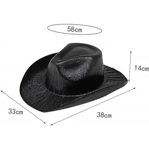 Neon Hologramlı Kovboy Model Parti Şapkası Siyah Yetişkin 39X36X14 cm