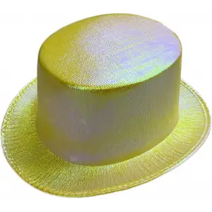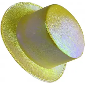 Sarı Renk Işıltılı Hologram Kumaş Kaplama Fötr Silindir Şapka Yetişkin Boy