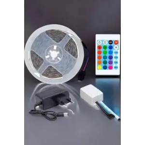 5 Metre Şerit Led RGB Işıklı Kumandalı Güç Adaptörü Her Ortama Uygun
