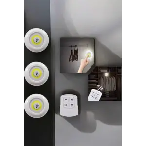 Led Lamba 3'lü Uzaktan Kumandalı Yapışkanlı Beyaz Işık