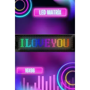 Led Matrix Bluetooth Bağlantılı Araç Camına Uygun Pixsel Görünümlü 16X96 pixel