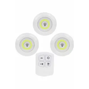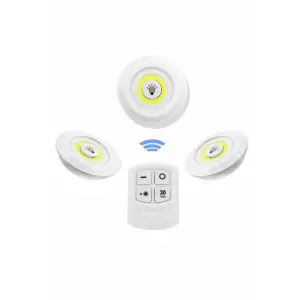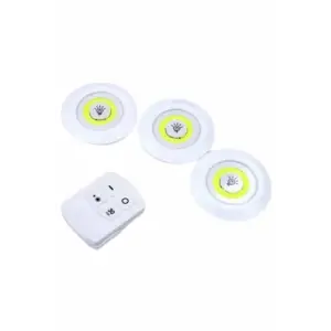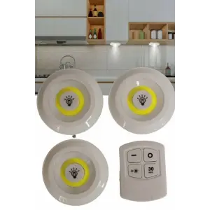 Yapışkanlı 3'lü Spot Led Işık Lamba Montajsız Pilli Uzaktan Kumandalı