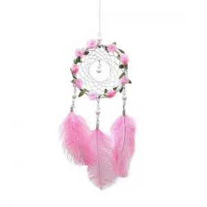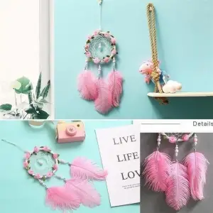 El Yapımı Kuş Tüyü ve Led Işıklı Dekoratif Asma Düş Rüya Kapanı