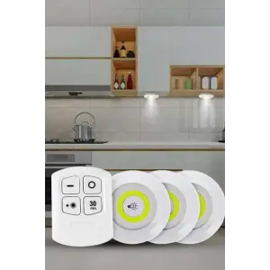 Dolap Işığı Mutfak Rafı Işığı Uzaktan Kumandalı 3 Lü Spot Led Lamba