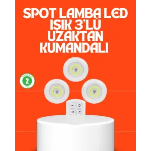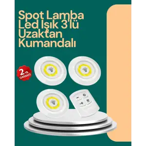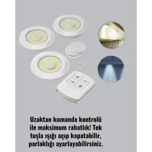 Uzaktan Kumandalı 3 Lü Kablosuz Led Spot Lamba Seti Yapışkanlı Pratik Kullanım