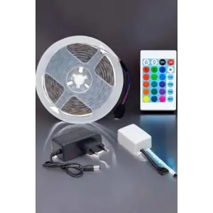 5 Metre Şerit Led RGB Işıklı Kumandalı Güç Adaptörü Her Ortama Uygun