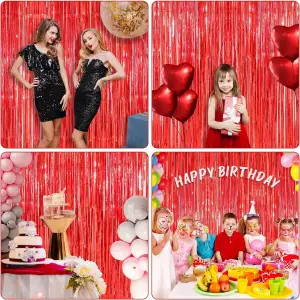 Kırmızı Renk Ekstra Metalize Parlak Saçaklı Arka Fon Perde İthal A Kalite 1x2 Metre