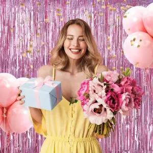 Rose Gold Renk Ekstra Metalize Parlak Saçaklı Arka Fon Perde İthal A Kalite 1x2 Metre