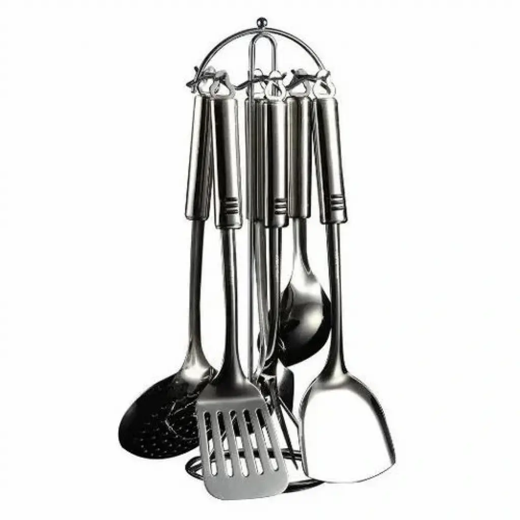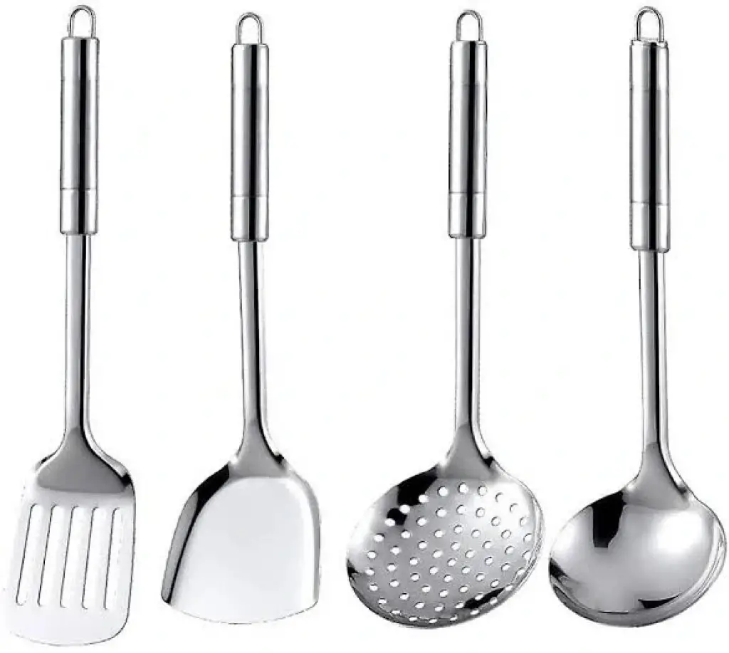 PASLANMAZ ÇELİK MUTFAK SETİPaslanmaz çelikten üretilen bu mutfak seti, dayanıklılık ve şıklığı bir araya getirerek mutfakta çeşitli işlemleri kolaylaştırır. Set, beş ana parçadan oluşur:Paslanmaz Stand: Fonksiyonel ve sağlam bir temel sunarak diğer mutfak araçlarını düzenli bir şekilde saklar. Mutfak tezgahınızda düzeni sağlamak için idealdir.Kepçeler (2 Parça): İki farklı boyutta tasarlanmış kepçeler, yemek pişirme veya servis yapma işlemlerinizde size esneklik sunar. Paslanmaz çelik malzeme, dayanıklılık ve hijyen sağlar.Spatula: Geniş ve düz yapısı ile kızartma, döndürme veya karıştırma işlemlerinde kullanılabilir. Paslanmaz çelik yapısı, uzun ömürlü ve güvenilir bir kullanım sunar.Kevgir: Pratik bir kullanım sunan kevgir, çorba, makarna veya diğer yemekleri süzmek için idealdir. Paslanmaz çelik malzeme, temizliği kolaylaştırır.Bu paslanmaz çelik mutfak seti, mutfakta çeşitli görevler için gereken temel araçları bir araya getirerek kullanıcıya pratiklik ve dayanıklılık sağlar.Paket İçeriği1 adet paslanmaz çelik mutfak seti