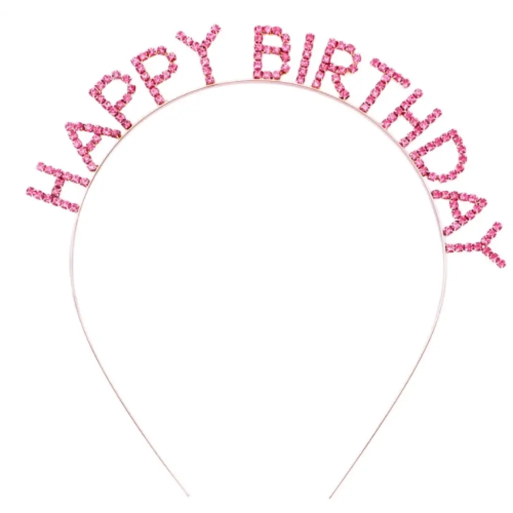 Pembe Kristal Taşlı Gold Happy Birthday Taçı