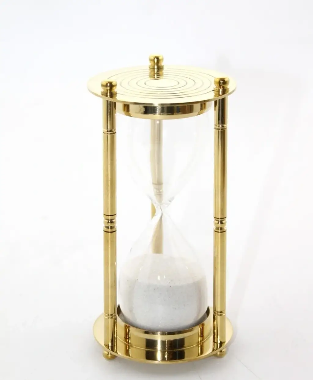 PİRİNÇ KUM SAATİ MODEL 5Ürün ÖzellikleriŞık ve zarif tasarımıyla dikkat çeken Pirinç Kum Saati Model 5, dayanıklı pirinç malzemeden üretilmiştir. Klasik tarzı modern dokunuşlarla buluşturan bu kum saati, masaüstü dekorasyonu için mükemmel bir tercih sunar. Şeffaf cam haznesi, ince işçiliğiyle ön plana çıkan pirinç çerçevesiyle tamamlanmıştır. Ofis, çalışma alanı veya ev dekorasyonu için nostaljik bir atmosfer yaratır.Paket İçeriği1 Adet Pirinç Kum Saati