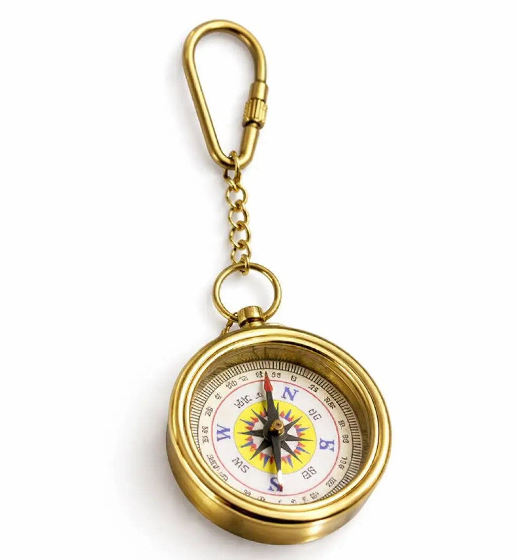 PİRİNÇ PUSULA ANAHTARLIK Ürün ÖzellikleriYönünüzü belirlerken tarzınızdan ödün vermeyin! Pirinç Pusula Anahtarlık, keşif tutkusunu ve klasik zarafeti bir araya getiren prestijli bir aksesuardır. Yüksek kaliteli masif pirinç malzemeden üretilen altın sarısı gövdesi, nostaljik bir gemici pusulası formunda tasarlanmıştır. İç kısmında yer alan çalışır durumdaki aktif pusulası sayesinde sadece bir aksesuar değil, doğa yürüyüşlerinde veya seyahatlerde kullanabileceğiniz fonksiyonel bir yardımcıdır. 11 cm toplam uzunluğuyla ideal boyuta sahip olan ürün, beyaz kadran üzerindeki klasik rüzgar gülü deseniyle otantik bir görünüm sergiler. Güçlü metal zinciri ve güvenli vidalı klips mekanizması sayesinde anahtarlarınıza, teknenizin anahtar grubuna veya sırt çantanıza güvenle takılabilir. Kaşif ruhlu dostlarınız, deniz tutkunları ve antika koleksiyonuna ilgi duyanlar için benzersiz bir hediye seçeneği olan bu pirinç pusula, her maceranızda yanınızda olacak.Ürün Teknik ÖzellikleriÖzellikAçıklamaMalzemeYüksek Kaliteli Parlak Masif Pirinç ve CamToplam Boyut11 cmFonksiyonAktif Çalışan Hassas Pusula İğnesiTasarımNostaljik Gemici Pusulası FormuAparatGüvenli Vidalı Metal Klips ve Dayanıklı ZincirKullanım AlanıEv, Araba, Tekne Anahtarlığı, Doğa SporlarıStilVintage, Retro, Marin (Nautical)Paket İçeriği1 Adet Pirinç Pusula Anahtarlık (11 cm)