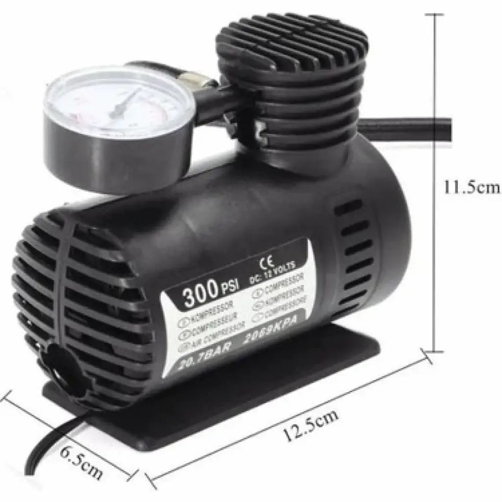 Plastik gövde oto çakmaklıktan beselenen elektrikli mini hava kompresörü. Universal 250 PSI 12V 3 farklı şişirme aparatı Kişisel uygulamalı bir üründür.