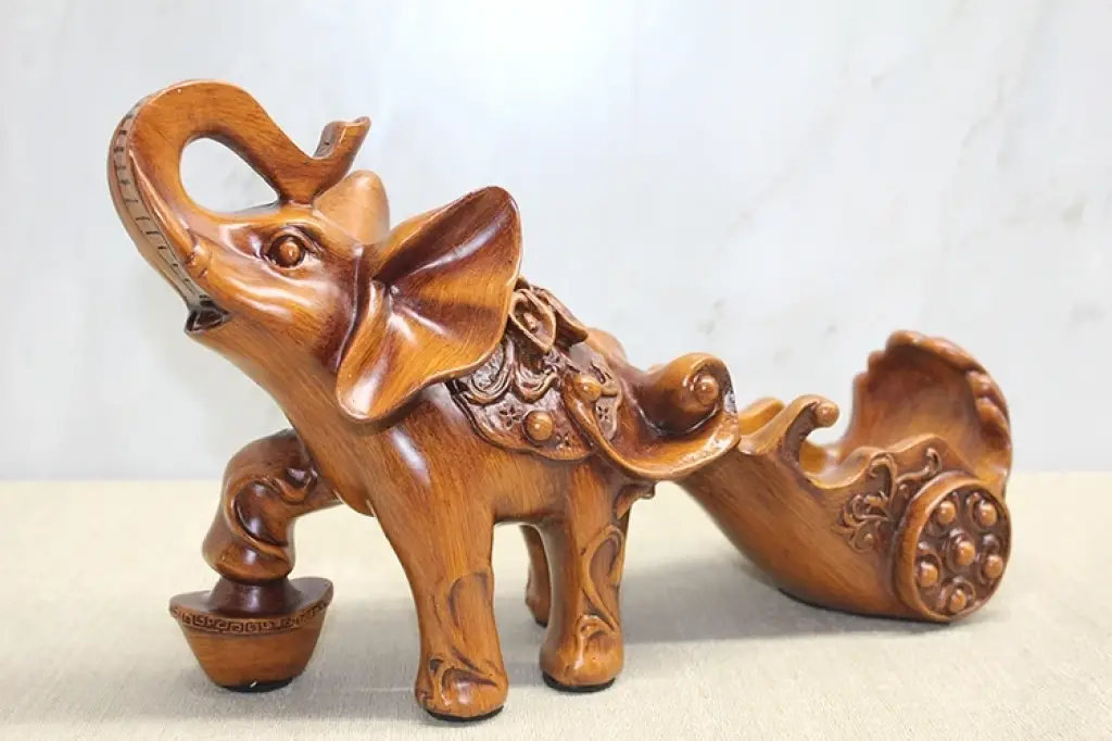 POLYESTER FİL FİGÜRÜ ŞARAPLIKÜrün Özellikleri35x12x20 cm boyutlarındaki polyester fil figürü şaraplık, zarif ve anlamlı tasarımıyla ev dekorasyonuna şıklık katar. El işçiliğiyle detaylandırılmış fil figürü, hem dekoratif bir obje hem de şarap şişesi tutucu olarak işlev görür. Polyester malzemeden üretilmiş olması sayesinde hafif ama dayanıklıdır. Şarap sunumlarını estetik bir şekilde tamamlamak isteyenler için şık bir masa aksesuarı olarak öne çıkar. Özellikle klasik ya da etnik tarzda dekore edilmiş alanlarda dikkat çekici bir detay sunar.Paket İçeriği1 adet Polyester Fil Figürü Şaraplık
