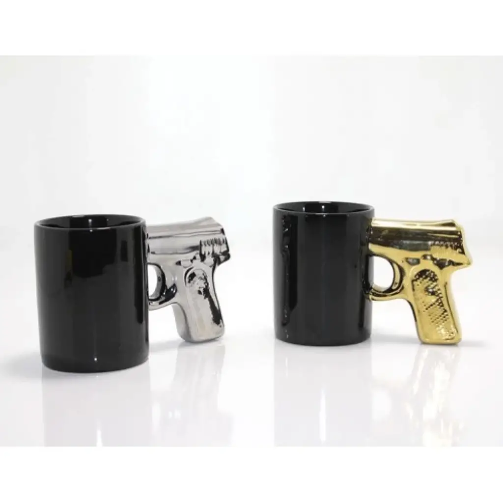 PORSELEN SİLAHLI KUPA BARDAK MODEL 4Ürün ÖzellikleriPorselen silahlı kupa bardak model 4, özgün ve dikkat çekici tasarımı ile öne çıkıyor. Siyah ve metalik detaylarla tasarlanmış bu kupa, silah şekilli tutma kulpu ile hem estetik hem de fonksiyonel bir kullanım sunar. Porselen malzeme ile üretilmiş olması, uzun ömürlü ve şık bir kullanım deneyimi sağlar. Modern ve yenilikçi tasarımı ile koleksiyonluk özelliğe sahip olan bu bardak, aynı zamanda hediye olarak da mükemmel bir seçim olacaktır.Paket İçeriği1 Adet Porselen Silahlı Kupa Bardak Model 4