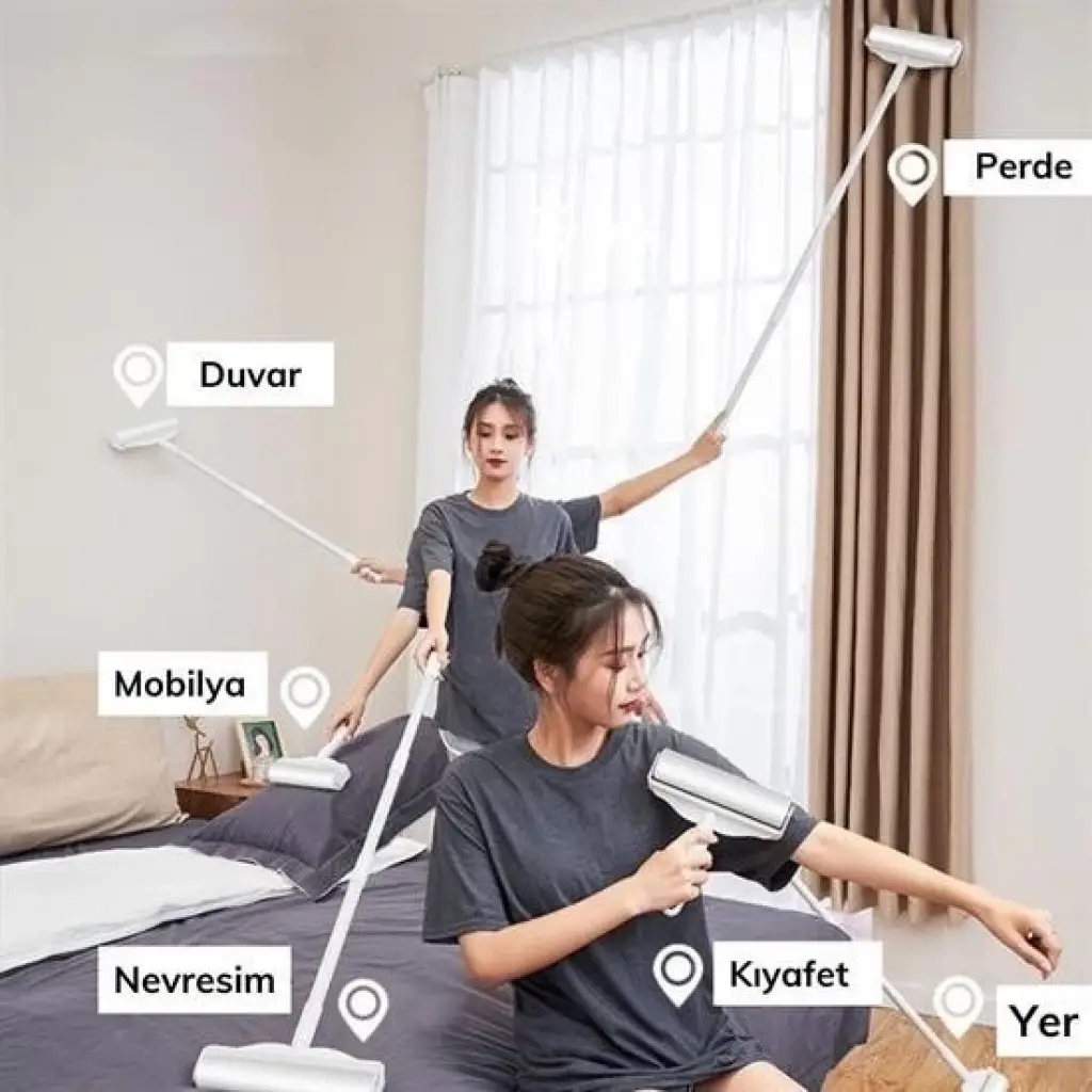 Yapışkanlı tüy rulosu, teleskopik saplı rulo, toz hav temizleyici, evcil hayvan tüy toplayıcı, kıyafet tüy temizleme, 24 cm rulo, yedekli tüy rulosu, pratik temizlik ürünü
