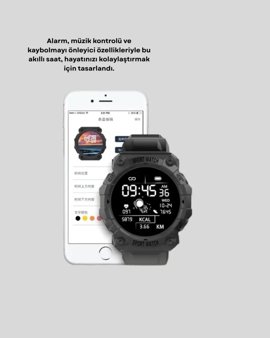 Teknolojiyi bileğinize taşıyın!Bu akıllı saat, modern yaşamın hızına ayak uydurmak ve sağlığınızı takip etmek için geliştirilmiştir.Metal kasası ve yumuşak silikon kordonu sayesinde hem spor kombinlerle hem günlük kıyafetlerle uyum sağlar.Hafif tasarımıyla gün boyu bileğinizde konfor sunar.Bluetooth 5.0 teknolojisi sayesinde Android ve iOS telefonlarla kolayca eşleşir.Gelen aramaları, mesajları ve sosyal medya bildirimlerini doğrudan saatinizde görebilirsiniz.Kalp atış hızı, kan basıncı ve oksijen seviyesi ölçümü gibi gelişmiş sensörlerle vücudunuzu anlık olarak takip edebilirsiniz.Ayrıca adım sayar, kalori hesaplayıcı, mesafe ölçer ve uyku izleme özellikleri sayesinde sağlıklı bir yaşam için motivasyon sağlar.Müzik kontrolü, alarm kurma ve telefon bulma özellikleri, günlük yaşamınızı kolaylaştırır.Dahili hava durumu göstergesi sayesinde dışarı çıkmadan önce günü planlayabilirsiniz.Uzun pil ömrü (1-2 gün), aktif kullanıcılar için ideal performans sunar.USB veya manyetik şarj özelliği ile hızlıca şarj edilebilir.Şık, akıllı ve fonksiyonel bu saat, her yaşa ve tarza hitap eder.Spor salonunda, toplantıda ya da seyahatte… her an yanınızda olacak bir asistan gibi çalışır.