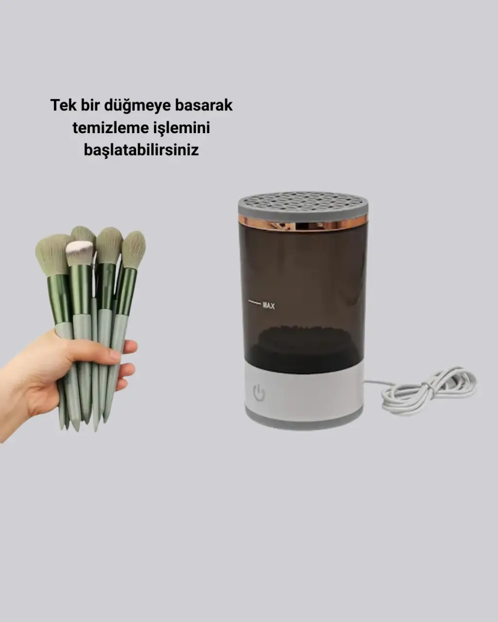 Makyaj uygulamalarınızda profesyonel sonuçlar almanızı sağlayan 13’lü makyaj fırça seti ile güçlü bir temizleme performansı sunan makyaj fırçası temizleyici şimdi tek kampanyada bir arada! Pudra, allık, fondöten, far, eyeliner ve dudak makyajı için özel tasarlanmış yumuşak ve yoğun kıllara sahip fırçalar, cildinize nazikçe dokunarak ürünleri eşit şekilde dağıtır. USB ile çalışan 7000 rpm hızında dönen fırça temizleyici ise fırçaları saniyeler içinde derinlemesine temizler. Şeffaf gövdesiyle temizlik sürecini izleyebilir, hijyeninize güvenle devam edebilirsiniz.