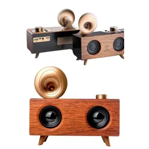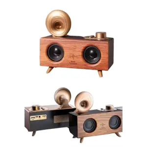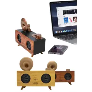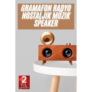 Bluetooth Nostalji Speaker Radyo Gramofon Ahşap Renk Vintage