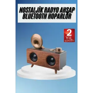 Bluetooth Nostalji Speaker Radyo Gramofon Ahşap Renk Vintage