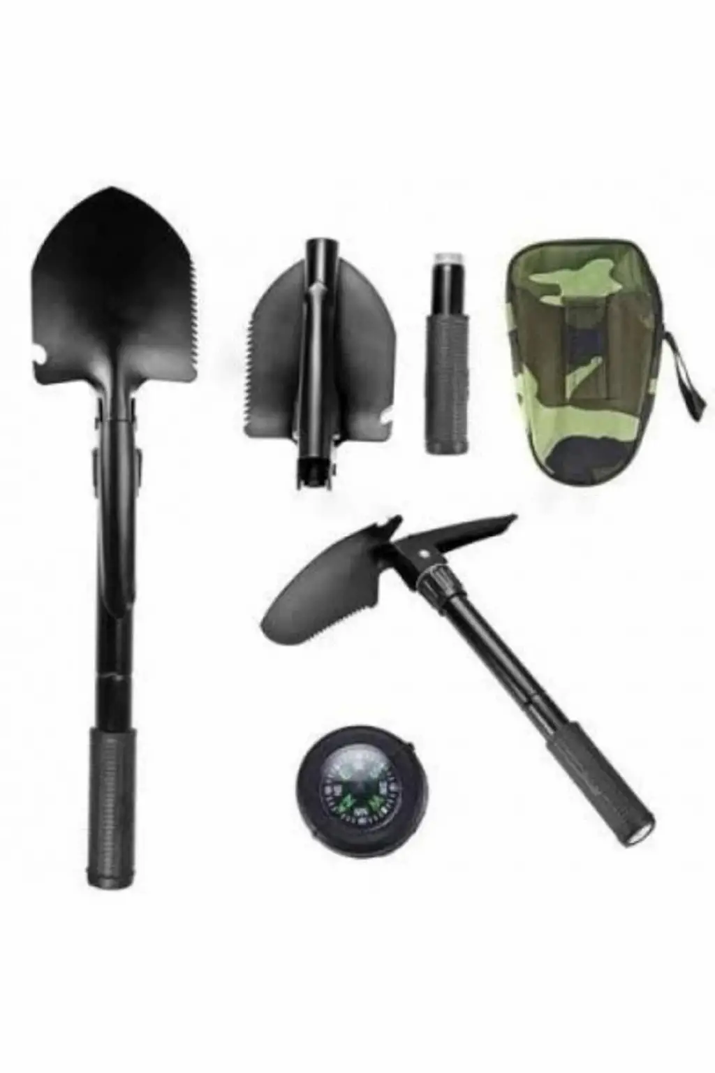 Pusulalı Katlanabilir Kazma Kürek Kamp Seti Kamp Küreği Portatif Çantalı