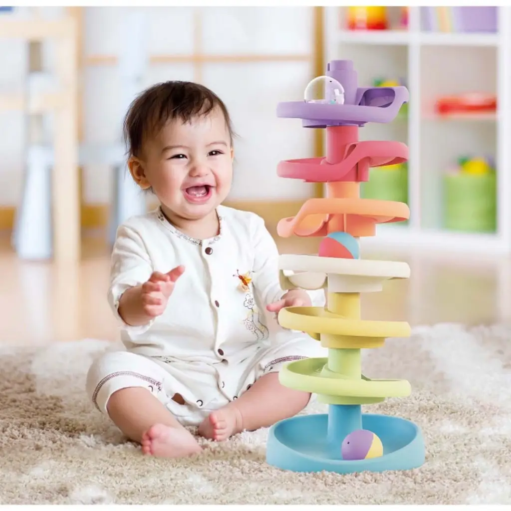 Spiral raydan yuvarlanan toplar sayesinde t.uuml;m .ccedil;ocuklar i.ccedil;in eğlence garantilidir.