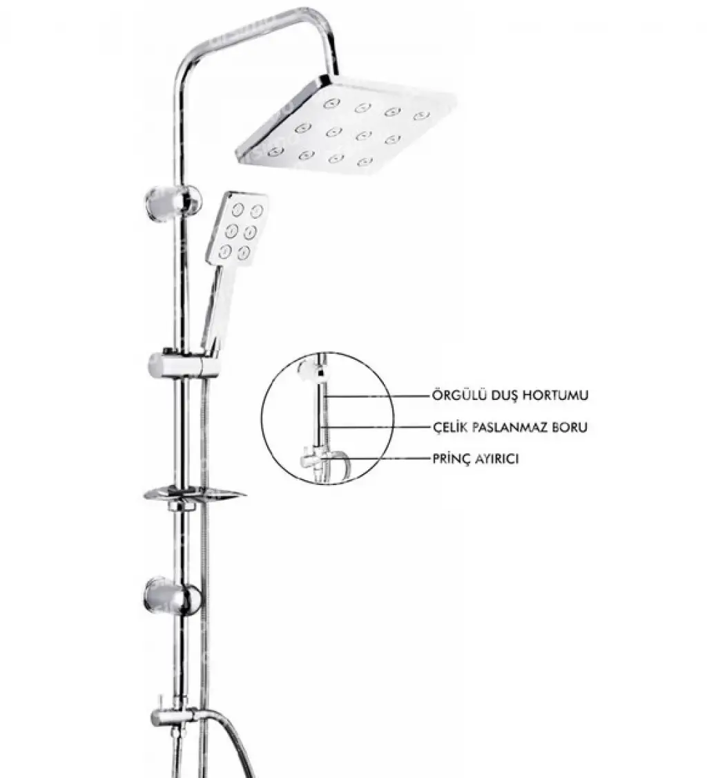 Robot Duş Seti Krom Dikdörtgen | Çok Fonksiyonlu Yağmur Robot Duş Sistemi Dikdörtgen Krom Lora 25 mm paslanmaz krom boru Kromlu ABS tepe ve el duşu 150 cm den 180 cm ye uzayabilen, çift kenetli, EPDM iç hortumu, Uçları ve somunları pirinç, kromlu paslanmaz çelik duş hortumu, Pirinç yönlendirici Krom kaplama ABS kurulum ekipmanı